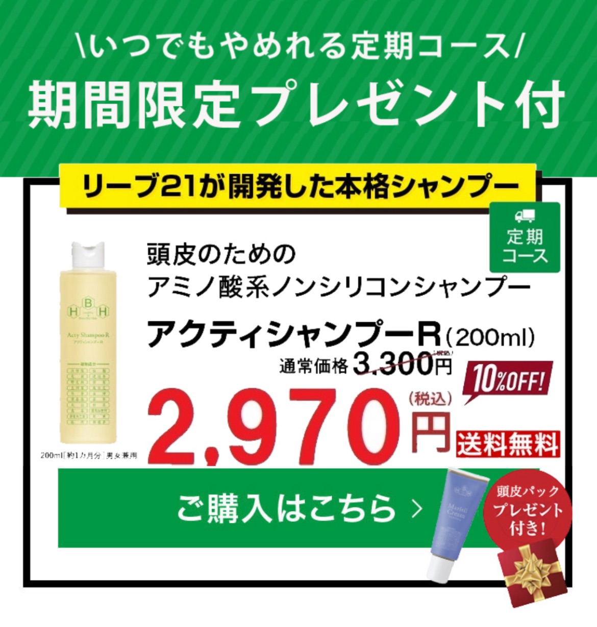 40年以上の発毛実績「毛髪クリニックリーブ21」のアクティシャンプーRが話題です!
