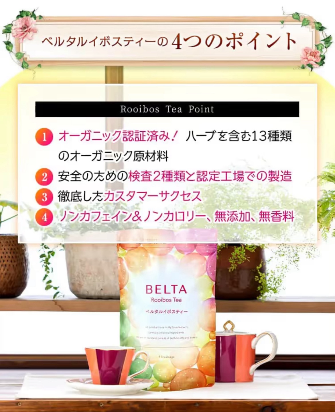 忙しい日常に、自然の恵みを取り入れてみませんか?毎日の美容と健康に、ベルタルイボスティーをぜひ。