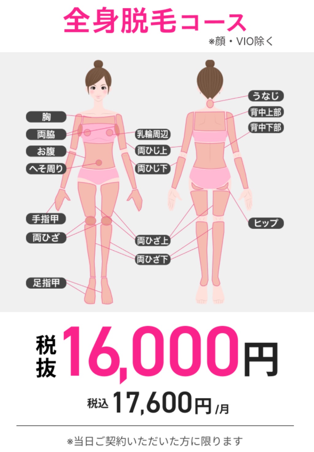 - 1回の施術で全身まるっと脱毛可能 複数箇所でも何度も通う必要なし!! 予約もすぐに取れるので安心!