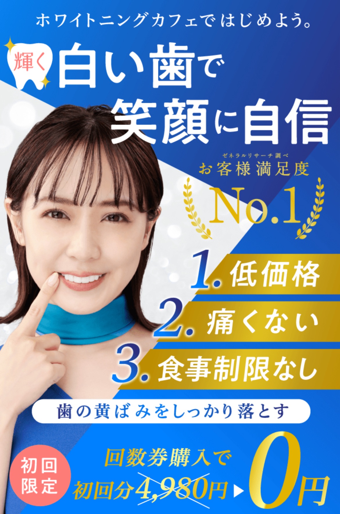 1回のホワイトニングで白さ実感☆ホワイトニングカフェ